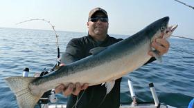 Charter fishing Lake Michigan for Salmon, Steelhead and Trout on Muskegon, Manistee, Pere Marquette river fishing with Capt. Art and Experience the thrill of a lifetime fishing with family, friends and business associates for trophy Salmon, Steelhead and Trout from the #1 Rated World Class fishing Port of Muskegon on beautiful